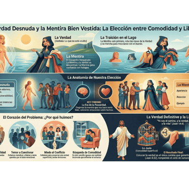 Y aquí, amigos míos, llegamos al corazón del problema, a una palabra que a menudo nos asusta: la vulnerabilidad. Así como la Verdad quedó expuesta y vulnerable sin su ropa, nosotros nos sentimos expuestos cuando una verdad nos obliga a despojarnos del ropaje de nuestras creencias más cómodas, arriesgándonos al juicio de nuestros líderes o seres queridos. Evitamos la verdad por varias razones profundamente humanas: